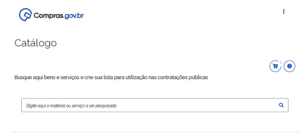 O Catálogo de Materiais e Serviços encontra-se disponível no Portal de Compras do Governo Federal – https://www.gov.br/compras/pt-br/sistemas/conheca-o-compras/catalogo sendo que a consulta pública poderá ser realizada no Ambiente Produção –