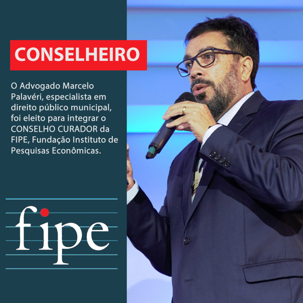 Marcelo Palavéri foi eleito para integrar o conselho curador da FIPE O Advogado Marcelo Palavéri, especialista em direito público municipal, com larga experiência profissional, autor de livros técnicos na área, foi eleito para integrar o CONSELHO CURADOR da FIPE, Fundação Instituto de Pesquisas Econômicas. A FIPE, criada em 1973 para o apoio incialmente à […]